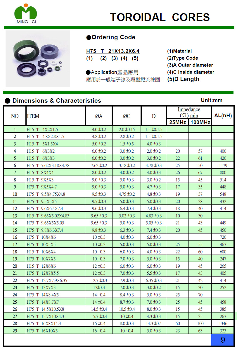 應用于一般端子線及環型扼流線圈。