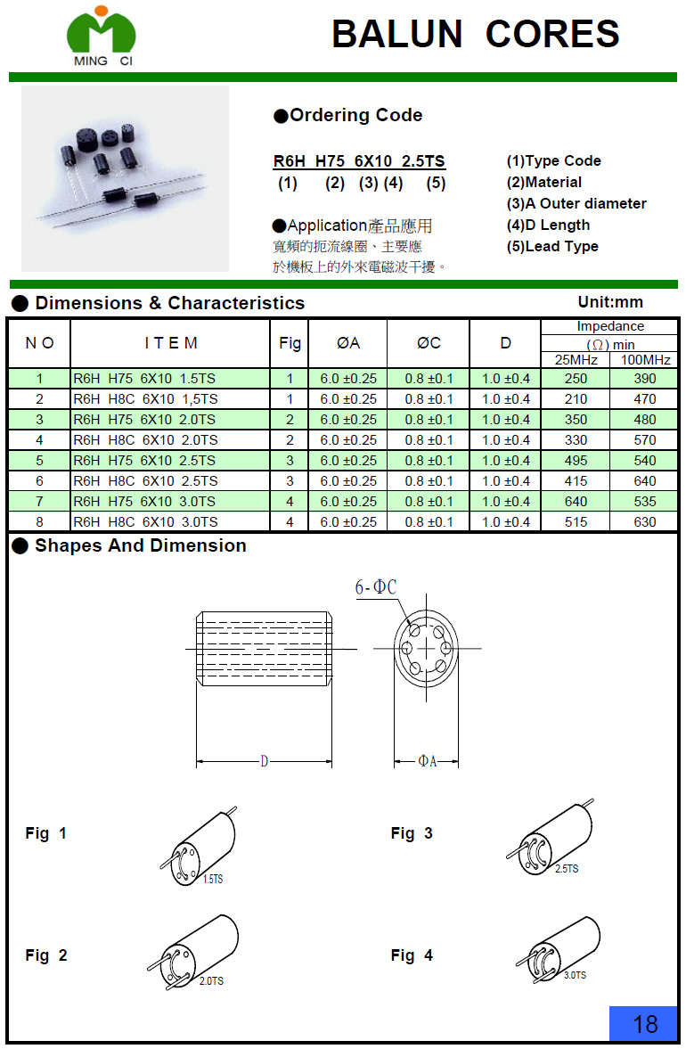 ● 導線通過多孔鐵氧體芯中的孔纏繞,物理分散,并且在寬頻率范圍內具有高阻抗。