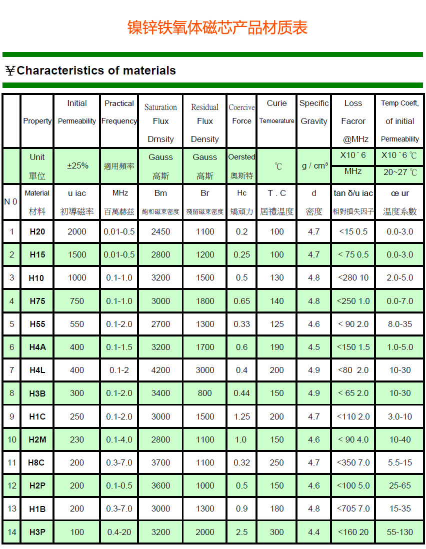 鐵氧體磁芯材料